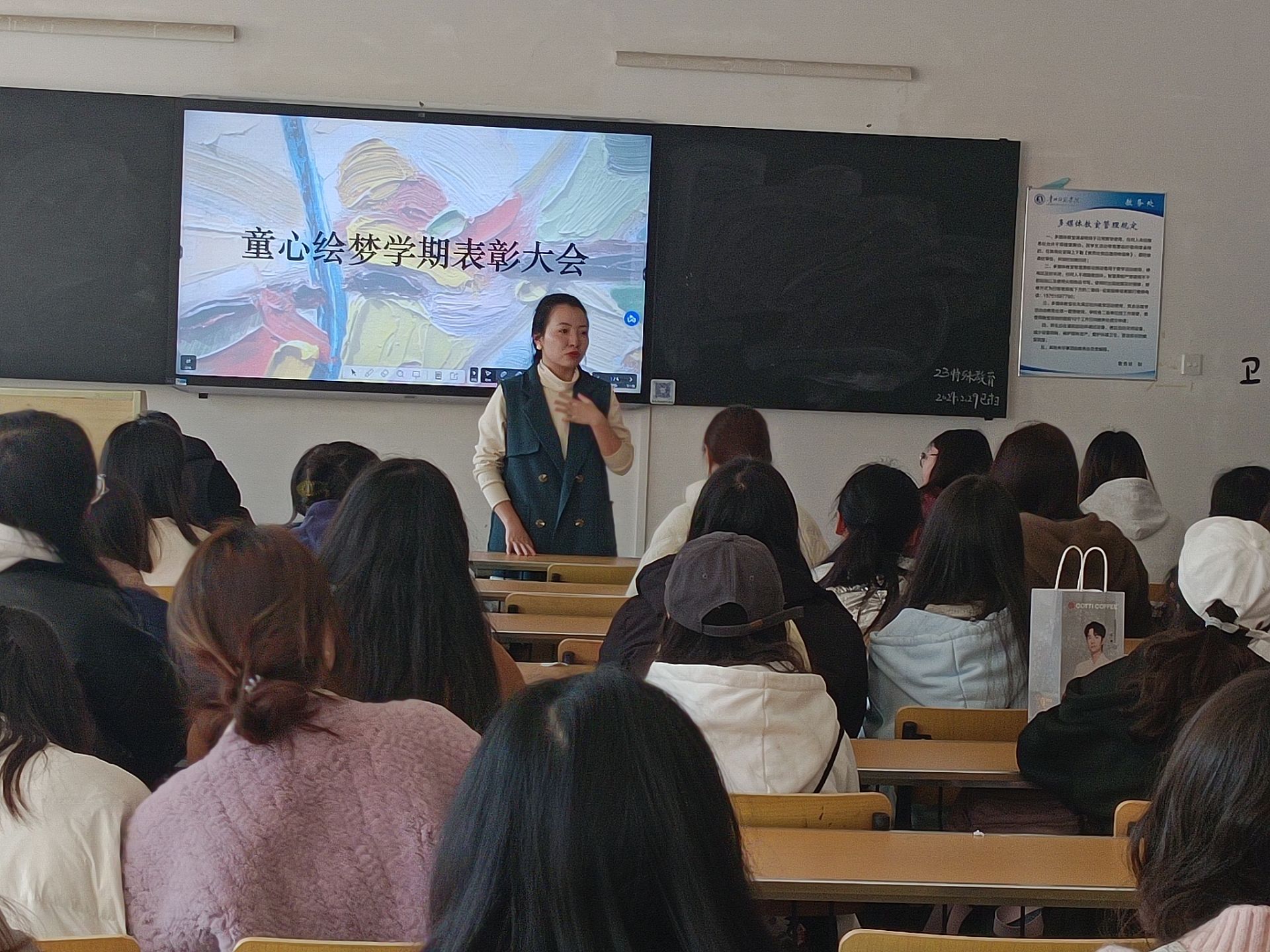 教育科学学院的童心绘梦艺术公益社团于2024年3月6日在逸夫楼隆重举行表彰大会。社团指导老师张源及社团成员代表参会,这次大会不仅是对上学期积极参与社团活动的同学们的肯定,更是对社团未来发展的一次展望。