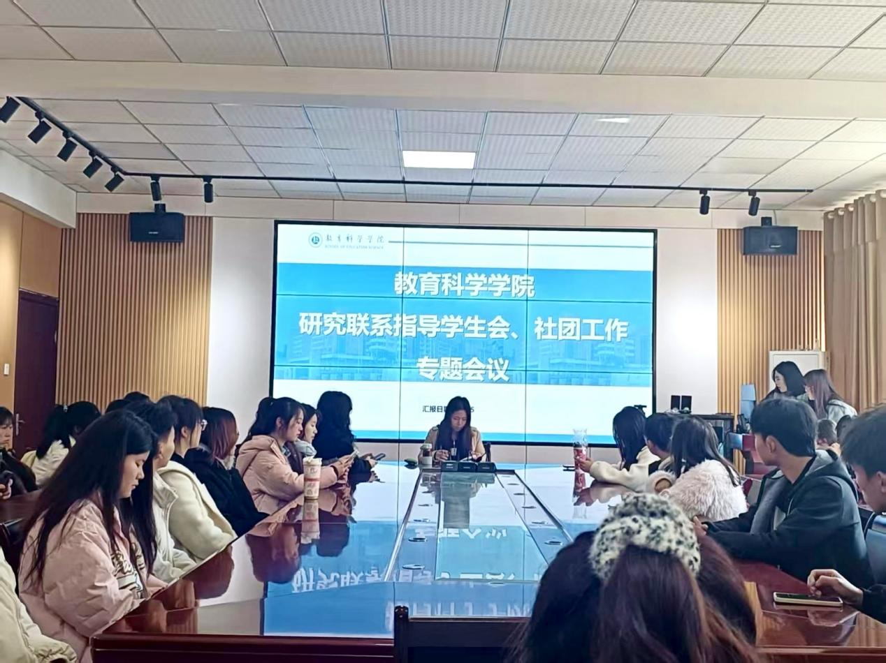 3月31日中午,教育科学学院团委在逸夫楼321会议室召开了2024-2025学年第二学期指导学生会组织、学生社团工作专题会议。会议由教育科学学院相关负责人李姿雨老师主持,团委学生会全体成员共同参与。
