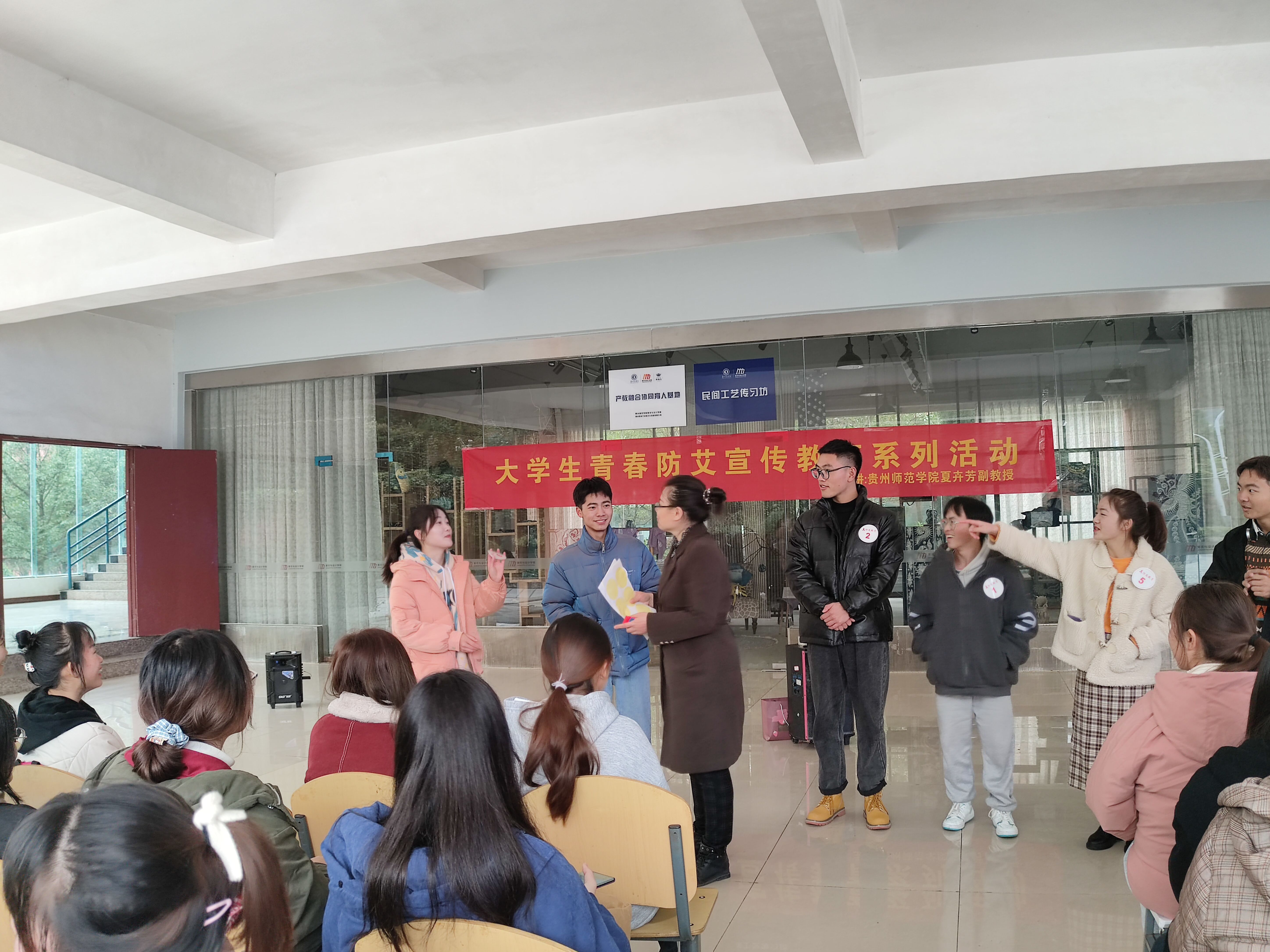 为了使我校大学生掌握性健康与防艾知识,增强大学生的性健康、防艾意识与能力,提升学生对两性健康与艾滋病防治知识、危害、防治策略、安全行为等知识能力,提高学生身心健康,教育科学学院副教授夏卉芳通过在我校进行大学生青春防艾宣传教育系列活动先后为教科院全体2021级学生、部分2020级学生,及化学大类专业学生和部分校内其他学生共400多名学生分别在凤凰广场、文韬苑旁广场、教科院舞蹈室逸夫楼B402等场所开展青春防艾教育指导活动。
