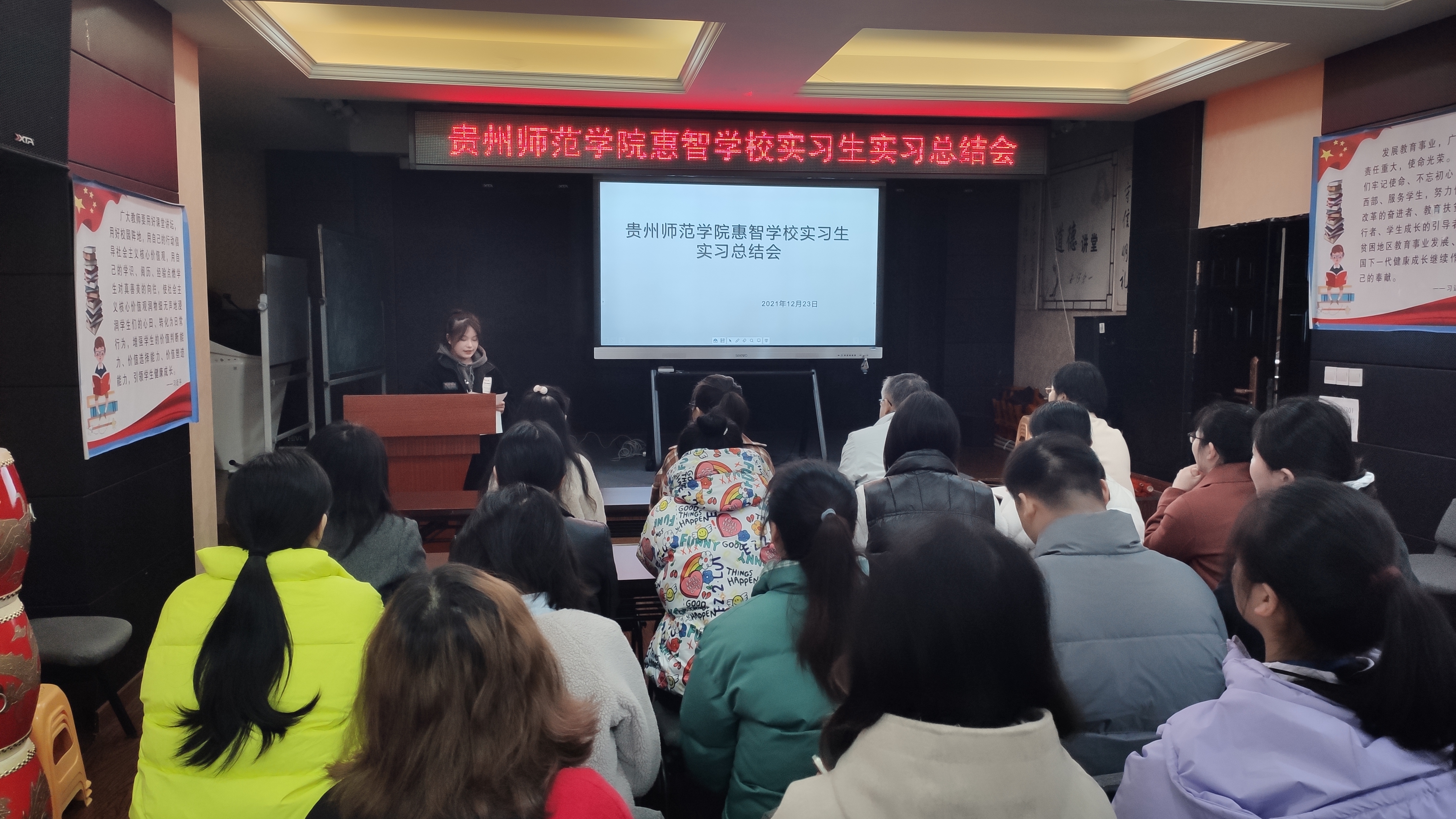2021年12月23日上午,教育科学学院夏卉芳老师应邀赴贵阳市云岩区惠智学校参加2018级特殊教育专业学生实习总结汇报会。