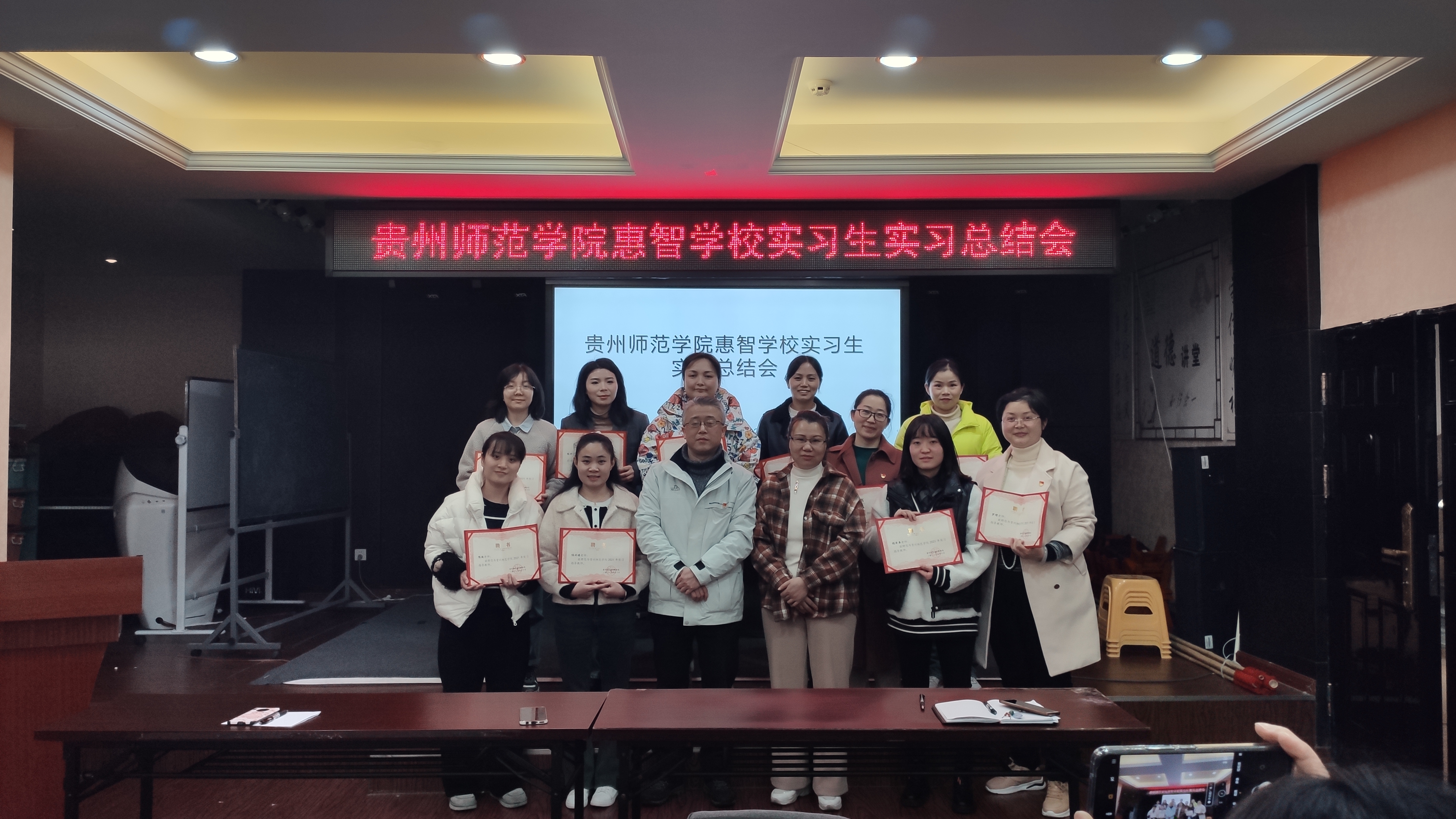 最后,夏卉芳副教授发言感谢云岩区惠智学校为我校实习生提供实习平台,感谢惠智学校的实习指导老师们在备课、授课、班级管理等各方面对实习生的指导关心,并要求今后我们的实习生要继续提高自己教育教学能力,关心爱护特殊儿童,做一名优秀的教师!