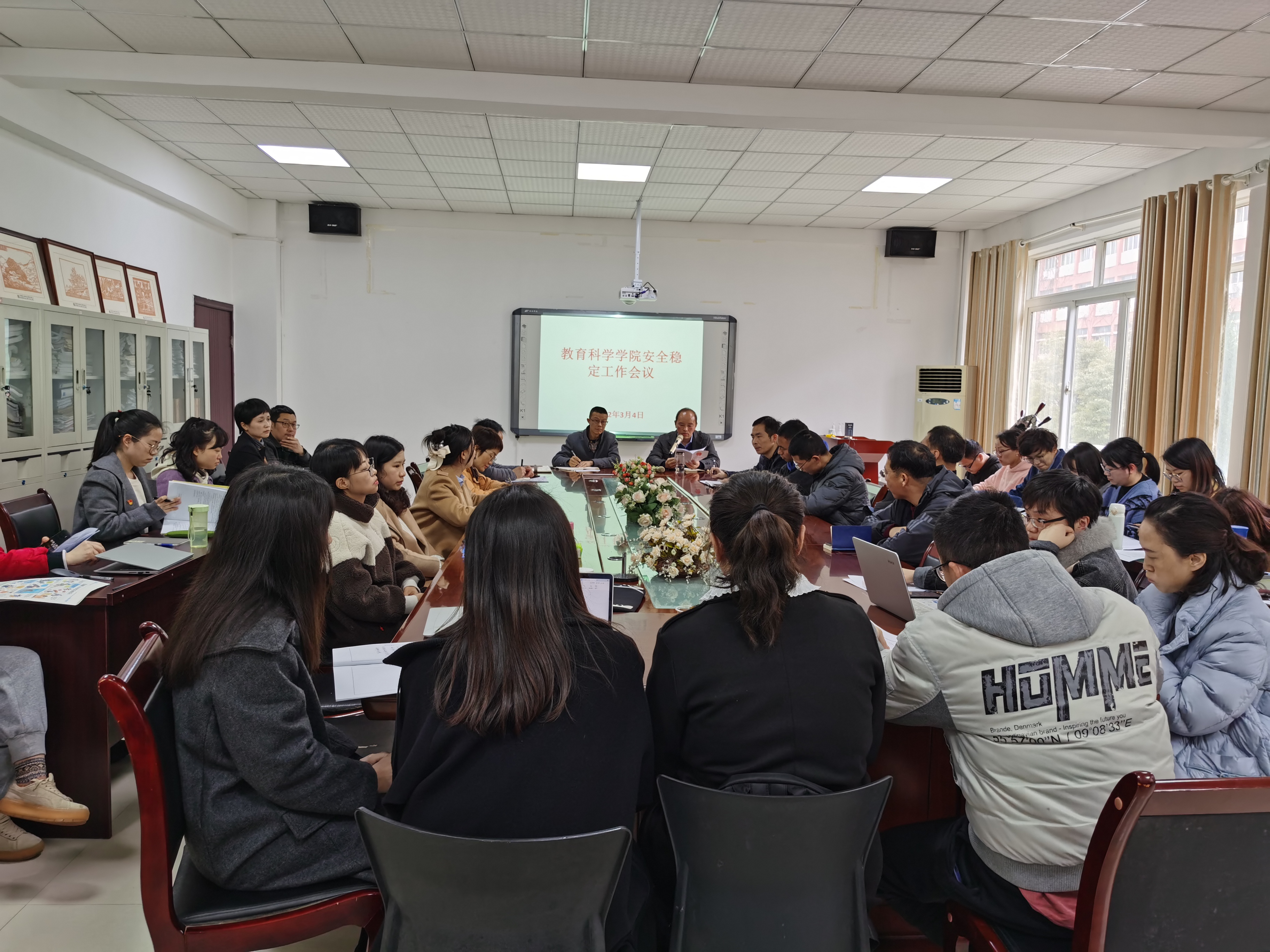3月4日下午,教育科学学院召开维护校园安全稳定工作会议,学院党委书记彭祥友传达上级文件精神并安排部署安全稳定工作,会议由院长宋万琚主持。