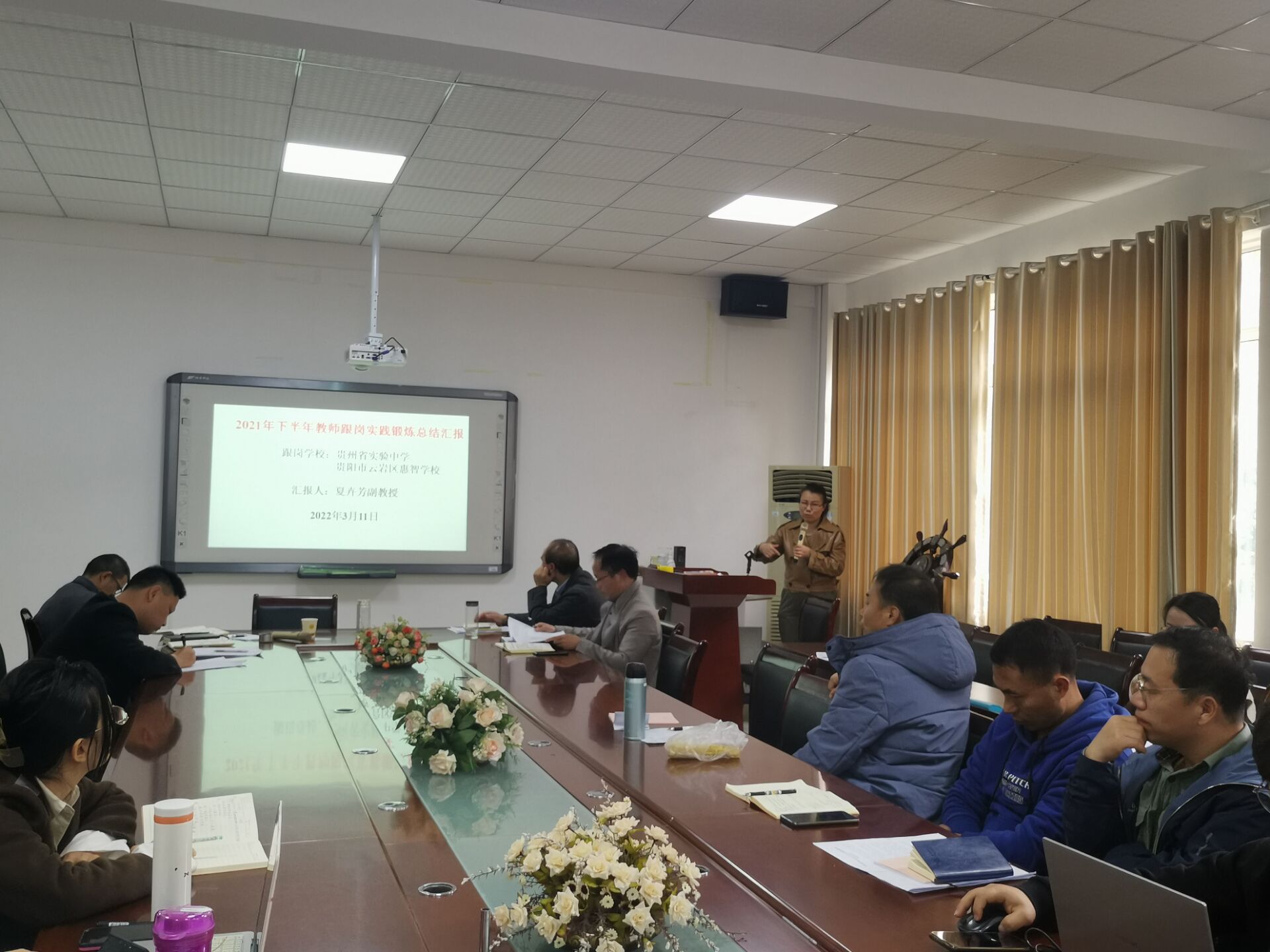 会上,夏卉芳老师介绍了2021下半年到贵州省实验中学心理中心与贵阳市云岩区惠智学校2所学校一线跟岗实践教学、科研等情况并同教育科学学院全体教师们进行分享与交流。夏老师说:作为一名全国防艾教育专家,2021下半年的跟岗实践工作虽然结束,但她会一直继续到贵州省各中小学(含特校)一线去为师生进行两性健康教育指导。接着,王雯颖老师介绍了在贵阳市六一幼儿园名师工作室的跟岗情况并与在场的老师交流,王老师将自己的心得与收获生动形象的介绍给了大家,并鼓励年轻教师积极参与跟岗实践,提升教学工作能力,也希望今后能够有更多的机会让青年教师深入一线进行跟岗实践,了解一线的教学工作情况,对毕业生的需求情况等,以便能为我系学生提供更为专业、有效的教学指导。