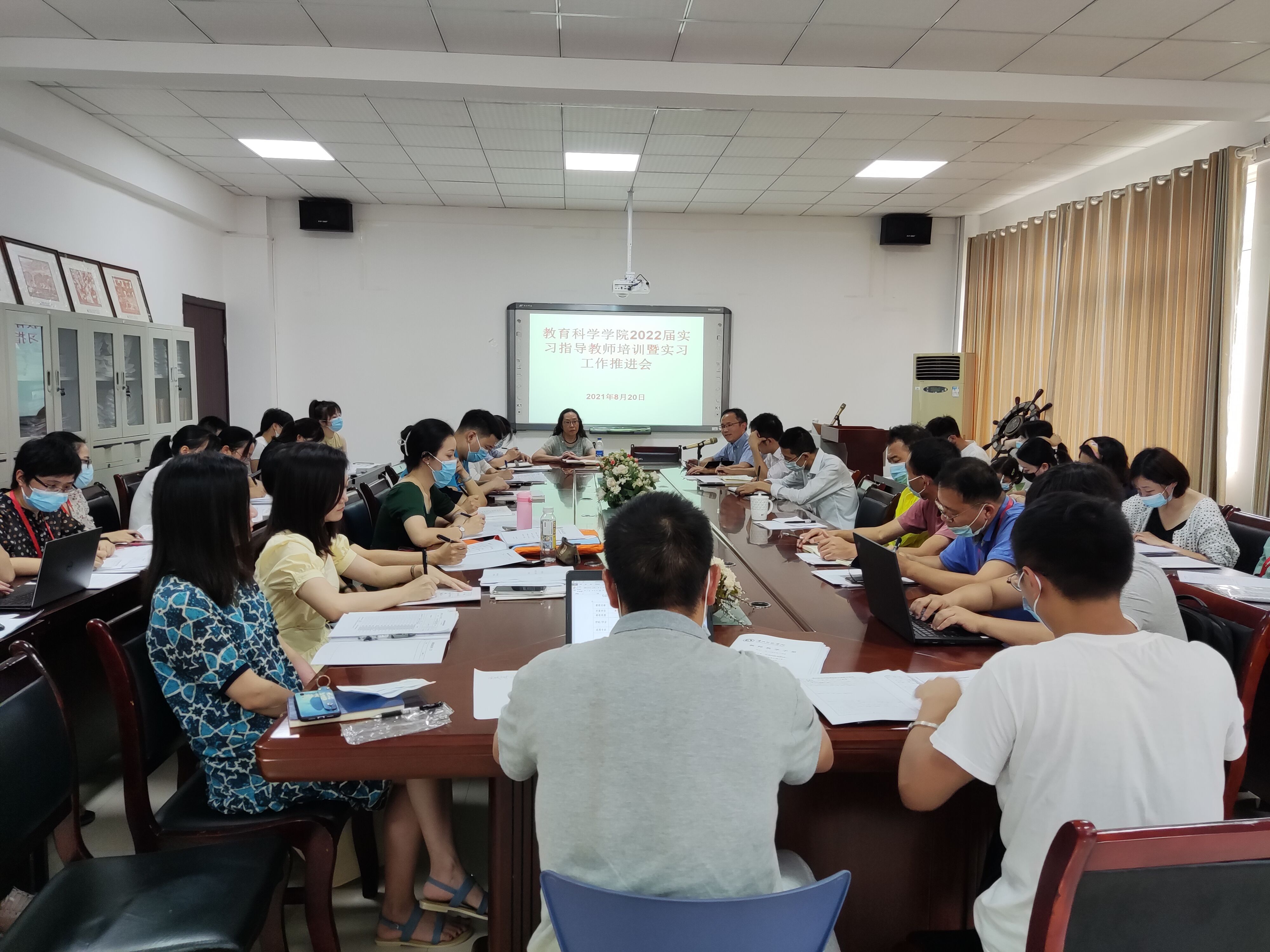为了明晰实习期间指导教师的工作职责,提升教师实习指导的有效性,进一步保障学生实习效果,2021年8月20日14:00,教育科学学院在逸夫楼321会议室召开了2022届实习指导教师培训暨实习工作推进会。院长刘红、党委副书记傅小芳、副院长黎平辉、副院长袁川以及全体2022届实习指导教师参加了此次会议。