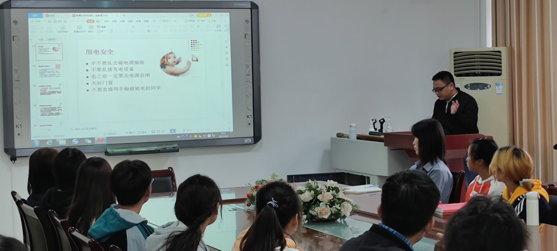 为加强实验室安全管理工作,提升学生的实验安全意识及能力,2021年1013日,教育科学学院唐辉一老师在逸夫楼321会议室对大一至大三的班级干部进行了实验室安全教育培训,涉及到应用心理学、学前教育、特殊教育和艺术教育四个专业的学生。