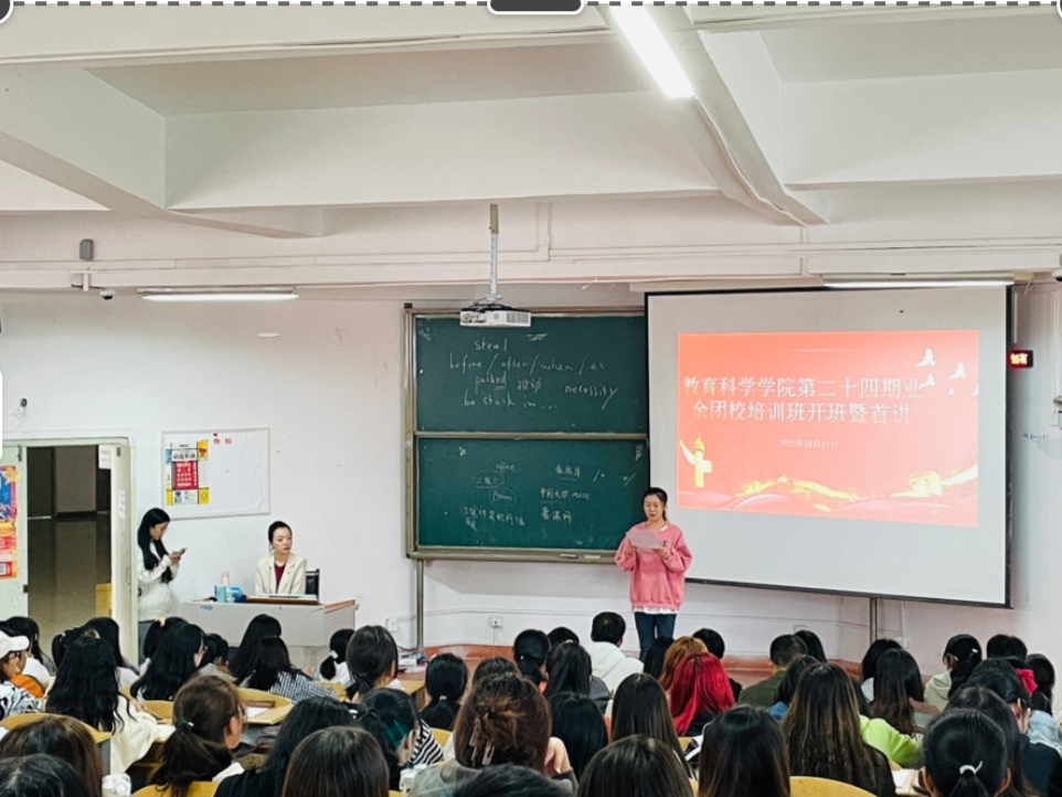 教育科学学院于10月11日-10月15日开展第二十四期业余团校培训。在团课上,教育科学学院团委书记张源老师带领同学们学习和领悟红船精神,也了解当下的黄大发老支书,张桂梅老师和袁隆平院士,让同学体会现实意义的红船精神。历史与档案学院团委王秋实老师从中国共产主义青年团这一方向讲述团的历史介绍团的知识,帮助同学更加全面系统的了解团组织。此外,本次团课授课形式丰富,优秀团员也参与其中。毛斌钰同学表明青年团员的不怕吃苦,敢于挑战,积极向上的态度。田叶惠同学向同学们宣讲习近平总书记七一重要讲话精神。周发撰同学带领同学开展讨论并总结交流内容,同学们各抒己见、认真思考有关新时代青年的使命担当及工作途径和战略定位等方面问题。马克思主义学院2019级团支书左更更就团干部如何开展工作、平衡工作和学习向同学分享自己的经验,也就团干部的定位提出明确观点。此次团课的开展,同学们认识到共青团是党领导的先进青年的群团组织。在中国不断发展的历史进程中,共青团在党的领导下,团结带领一代又一代有志青年书写了无上光荣。同学们用事实和行动庄严宣示:坚定不移跟党走就是同学们的初心,为党和人民不懈奋斗就是同学们的使命。