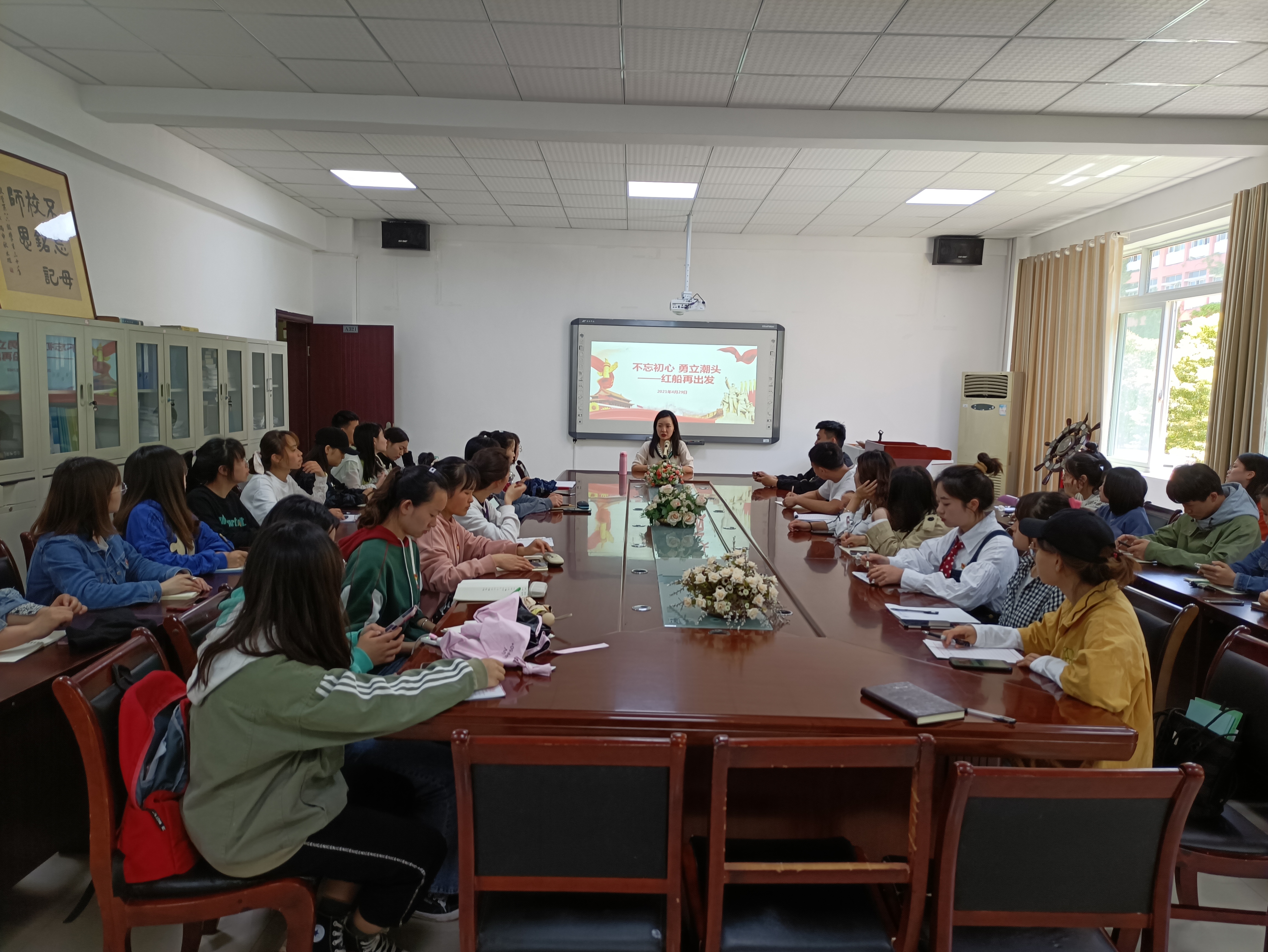 4月29日中午,教育科学学院举行党史学习教育宣讲学习,学院团委书记张源上专题党课,学院学生党支部参加集中学习。