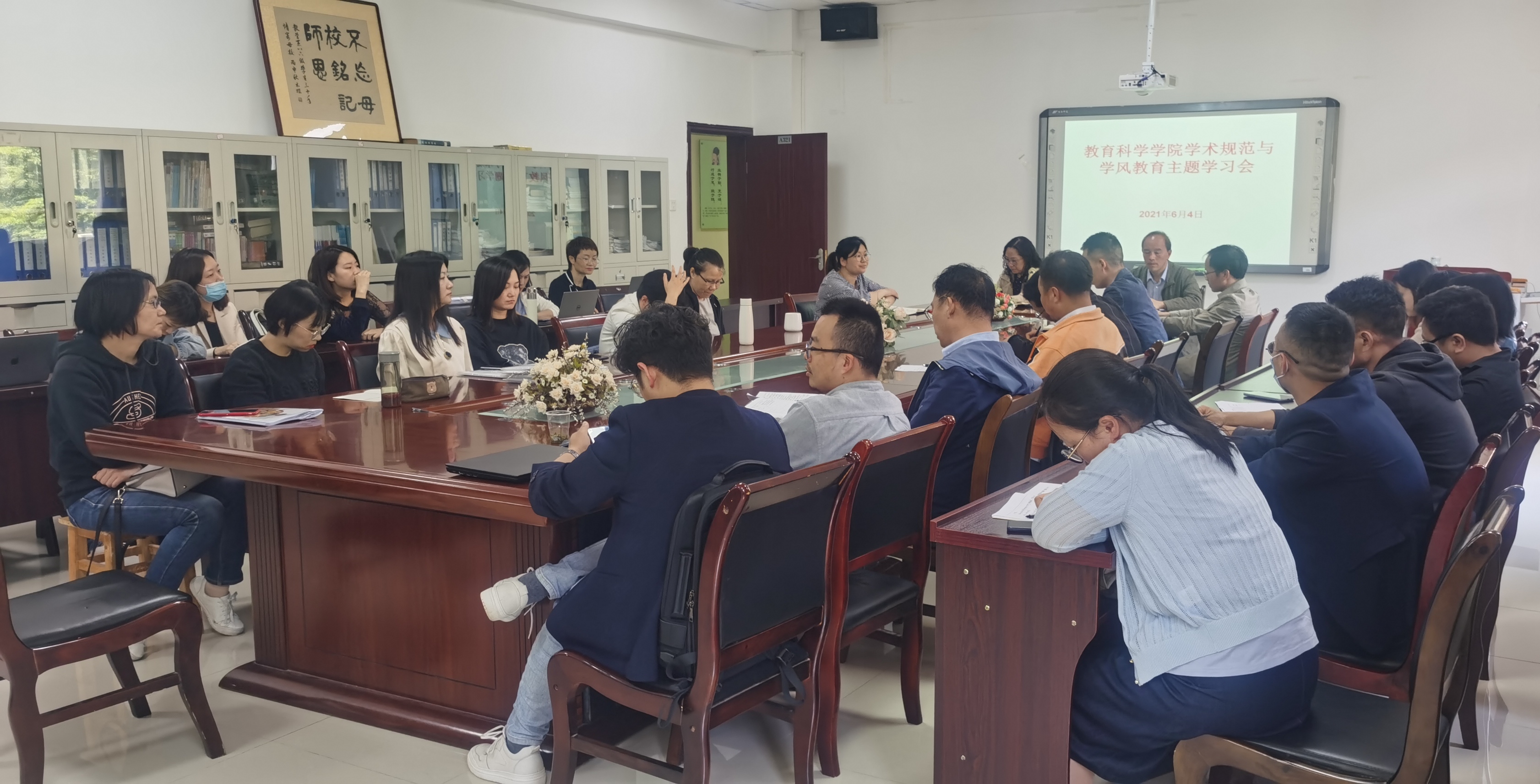 2021年6月4日下午,教育科学学院在逸夫楼会议室召开2021年意识形态与安全稳定工作会议,全体教职工参加了本次会议。