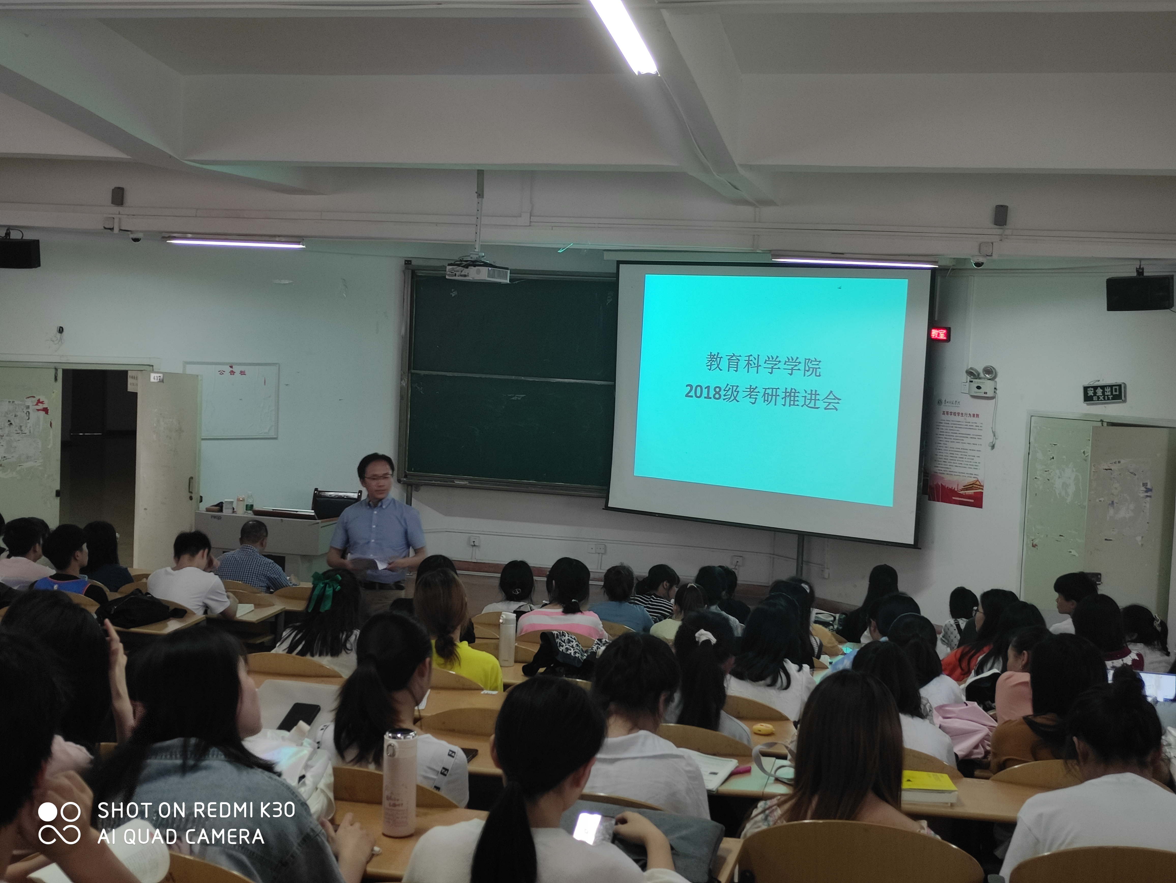 2021年6月8日下午,教育科学学院在宁静楼437教室召开教育科学学院2018级考研推进会,党委书记彭祥友、副院长黎平辉、助研班主任邓秀平、唐辉一老师以及2018级全体考研学生参与了本次推进会。