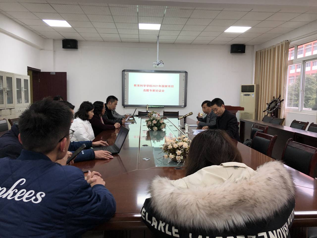 为提高2021年全国哲学社会科学项目申报质量,2020年11月27日上午,教育科学学院在会议室组织召开课题申报选题论证会,指导专家是贵州大学博士生导师安世遨教授和靳永翥教授,会议由学院院长刘红主持,副高及以上职称的教师参加了会议。