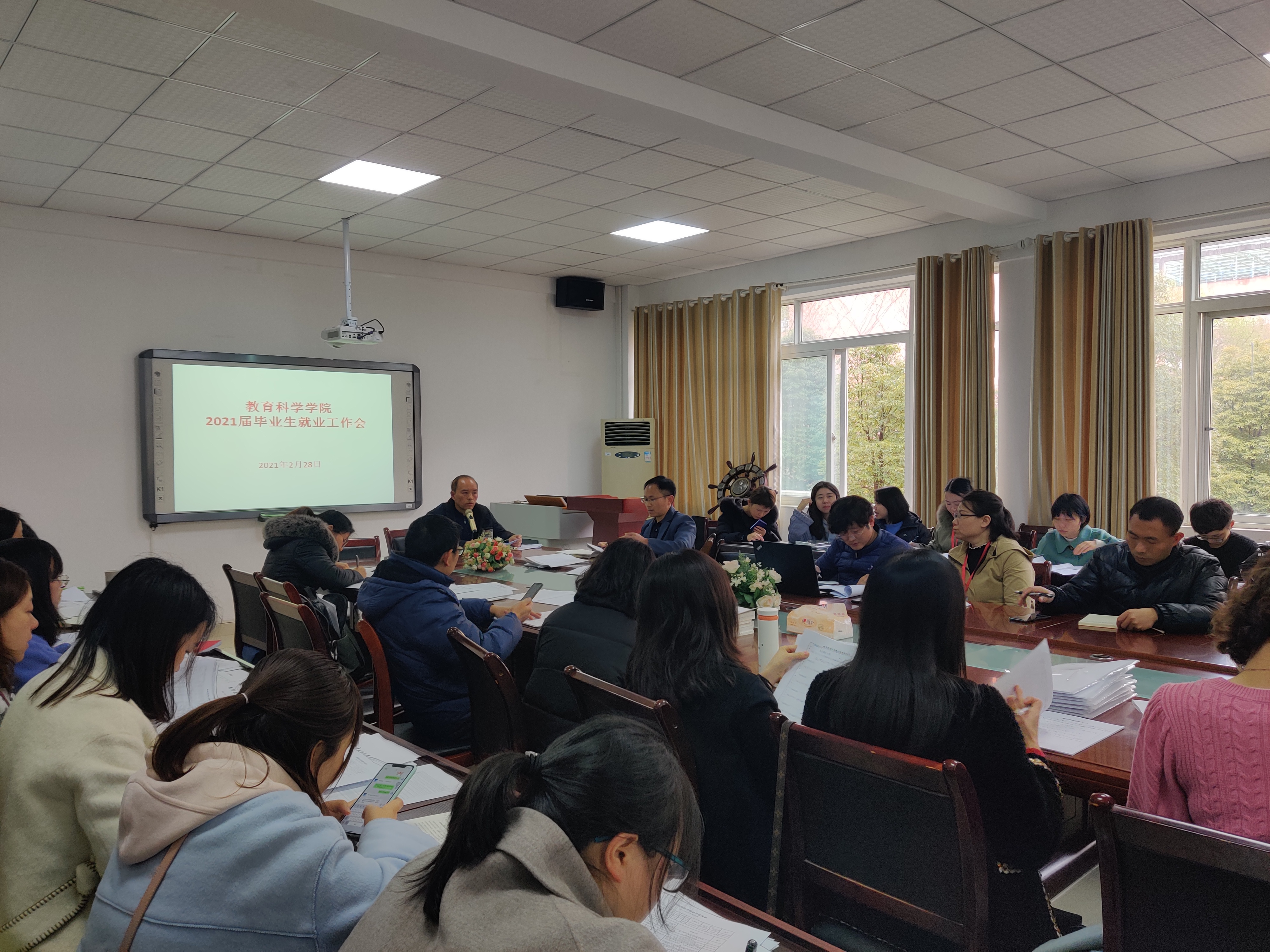 2021年2月28日下午14:30,教育科学学院在逸夫楼会议室召开了2021届毕业生就业工作会,会议由学院党委书记彭祥友主持,学院全体教职工参加。