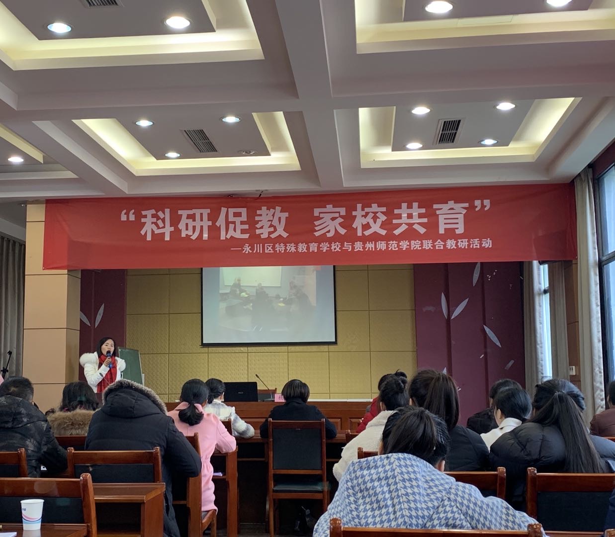 2019年12月13日,为促进高校理论与一线特殊教育学校实践更好的结合,做到优势互补,协同发展,贵州royal皇家88平台特殊教育系与重庆市永川区特殊教育学校举办联合教研活动,特殊教育系主任杨娟前往参加。