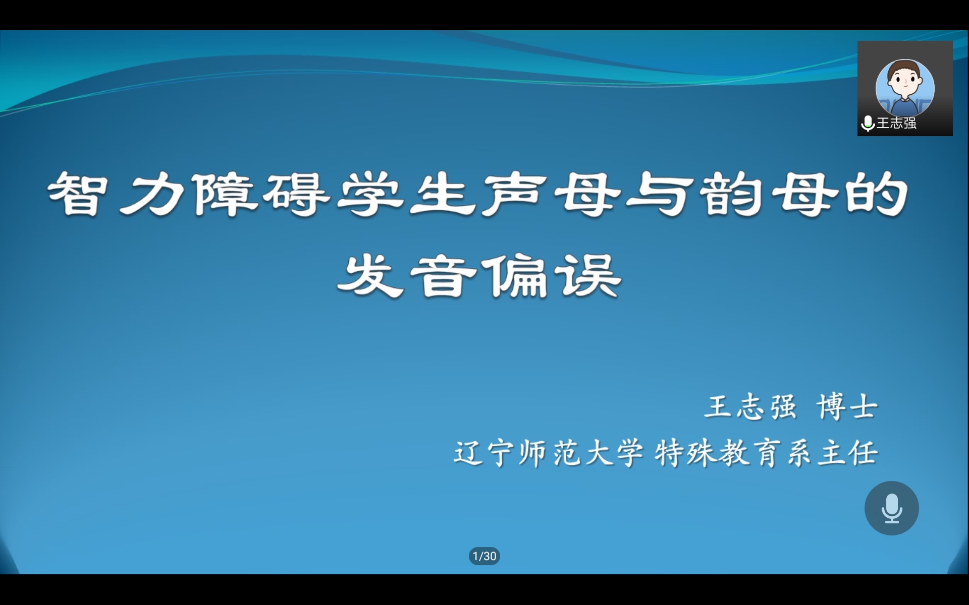 2020年5月28日下午,教育科学学院举办了以“智力障碍学生声母韵母的发音偏误”为例的教学研究线上讲座。辽宁师范大学特殊教育系主任、硕士研究生导师王志强博士为此次讲座的主讲嘉宾,我校特殊教育专业2018、2019级全体学生参与讲座。