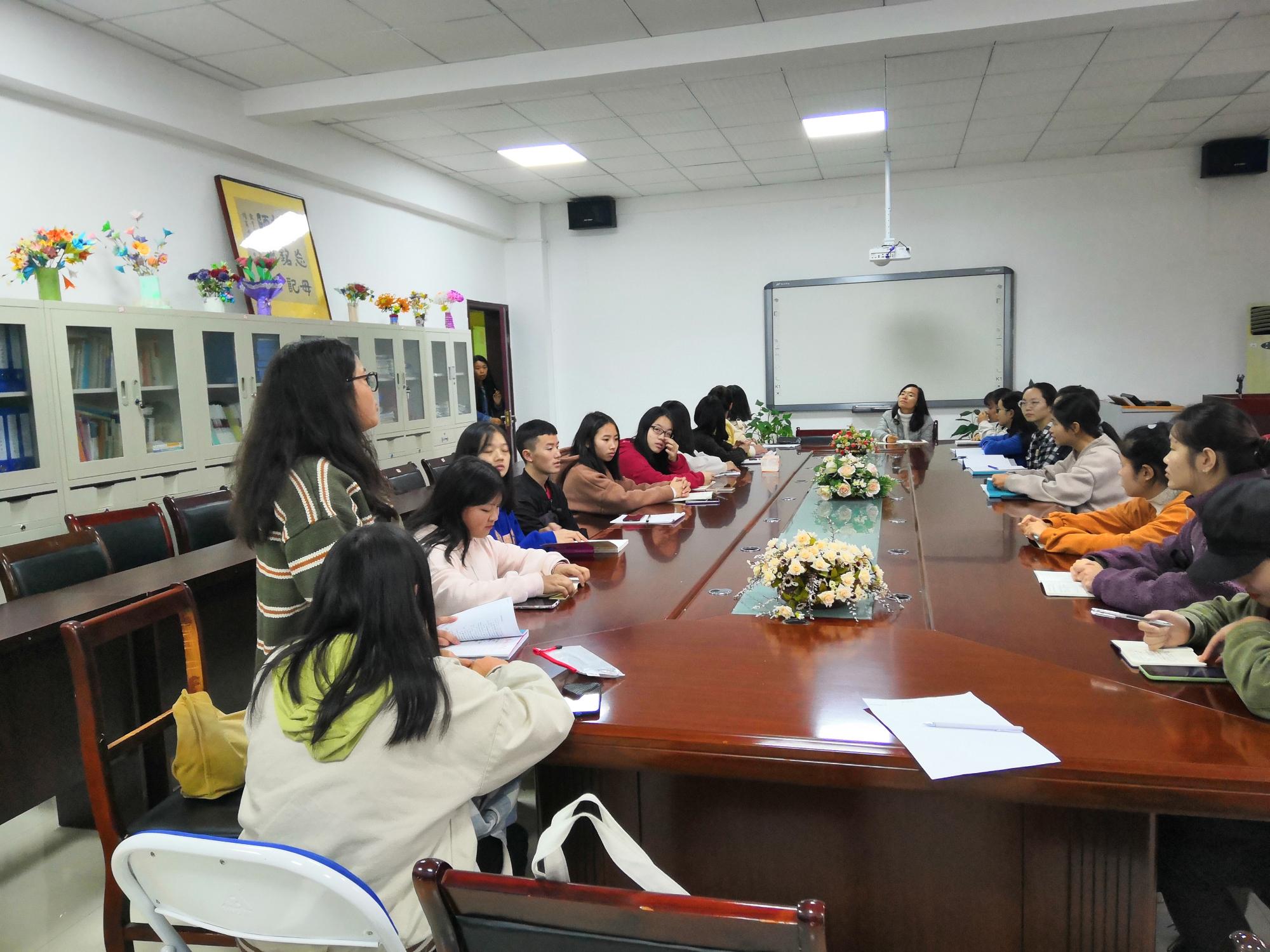 首先,杨娟表示对首次参加座谈会的19级新生表示欢迎并介绍座谈会的目的。为了改善全系的教学,完善管理体制,沟通学生和教师,学院通过座谈会了解学生的学习情况、生活情况以及教师教学、课程安排方面的情况。