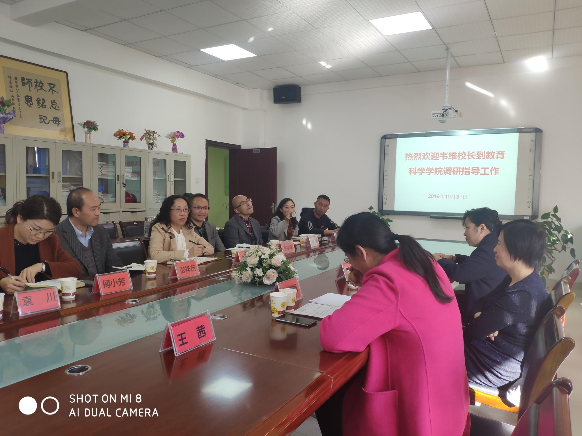 韦维校长听取教育科学学院刘红介绍学院基本情况