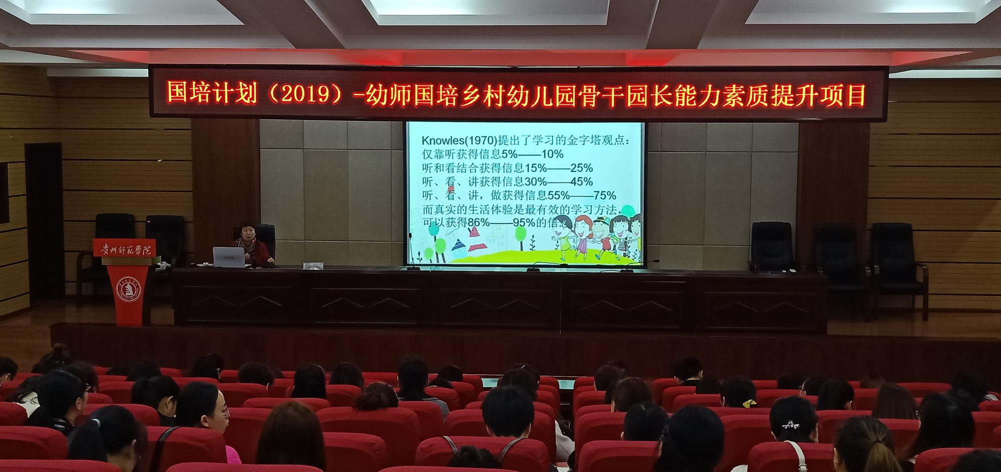 11月7日,原北京西城区学前教育教研室主任刘亚明在道德讲堂为国培计划(2019)——幼师国培乡村幼儿园骨干园长能力素质提升项目的全体园长开设了《幼儿园园本课程的开发与建设》讲座。