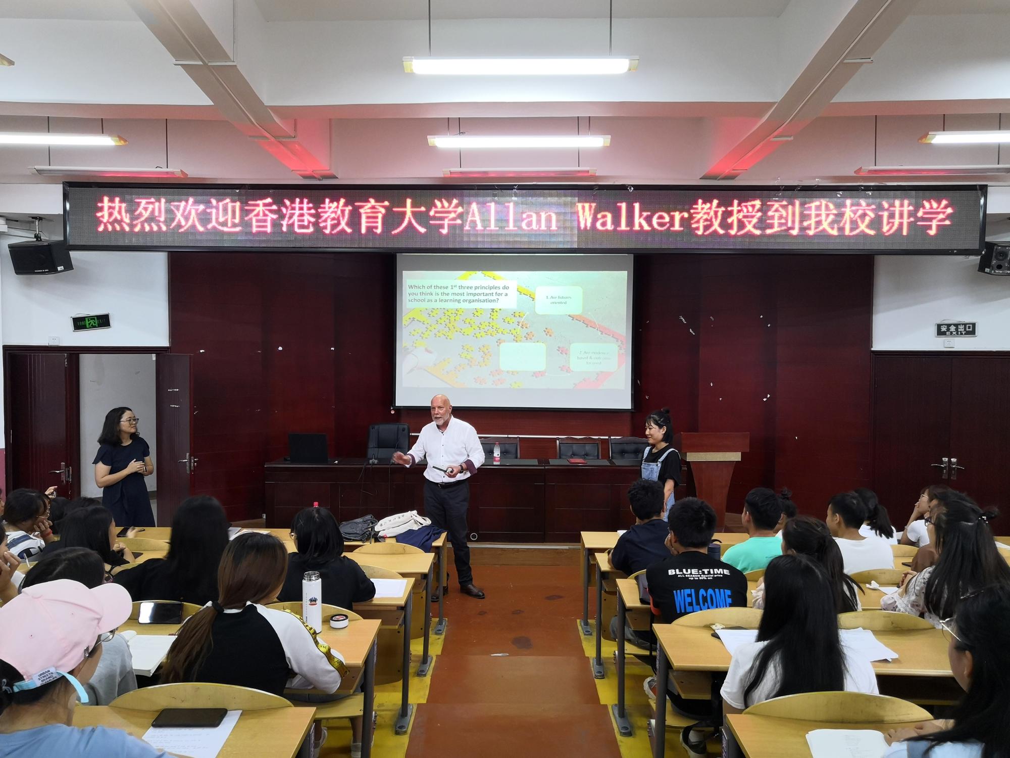 2019年6月26日下午3点,香港教育大学教育与人类发展学院院长、博士生导师Alan Walker教授亲临贵州师范学院宁静楼学术报告厅,为教育科学院全体学生干部开设了主题为“未来学校的领导力”的讲座。此次讲座由教育科学学院刘红院长主持,香港教育大学钱海燕教授翻译。