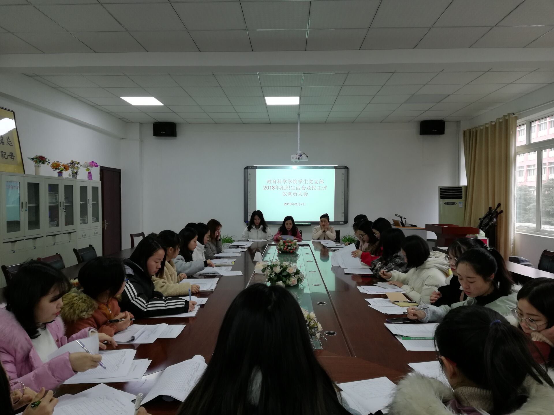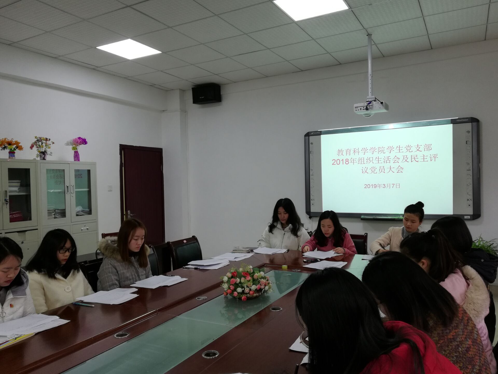 3月7日,教育科学学院学生党支部在逸夫楼321会议室组织召开2018年组织生活会及民主评议党员大会。学生党支部书记申苒、我院党员老师张思远、马慧慧及支部全体党员共计28人到场参加,会议由申苒主持。