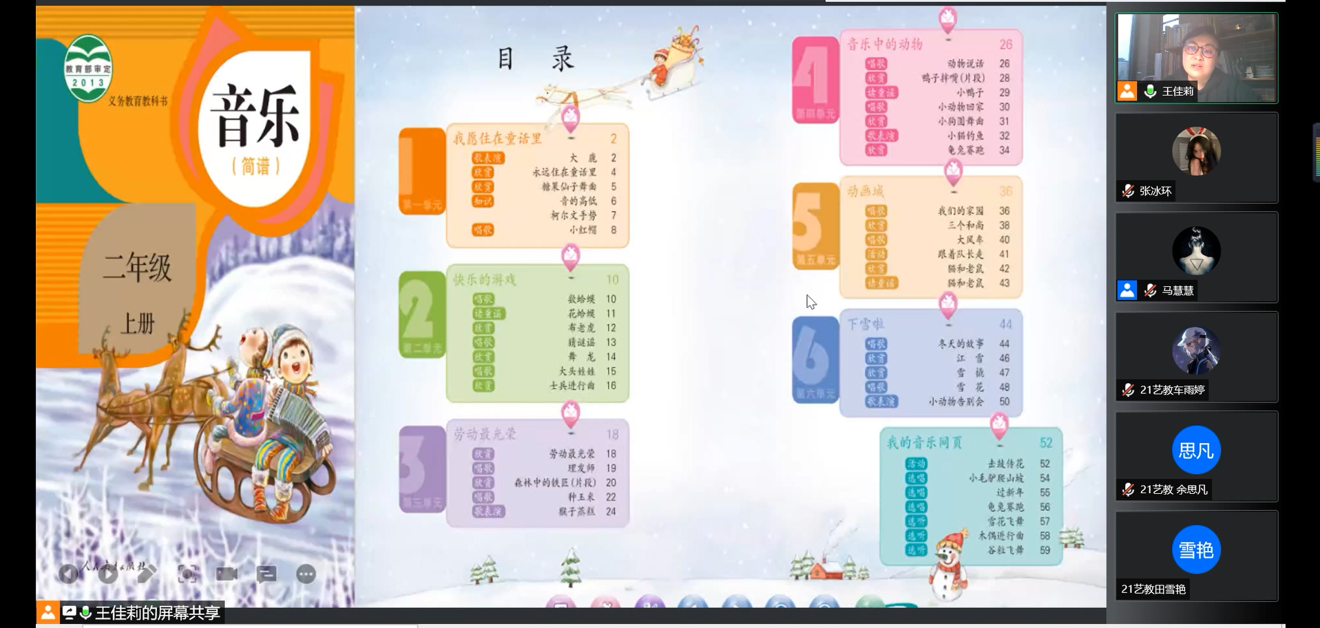 王佳莉老师分别从读教材、教材与课标的关系、用素材、上好课四个方面展开讲解。首先,王佳莉老师细致入微的以人音版小学音乐教材1-6年级为例,逐一进行教材分析、讲解;随后,对如何合理使用教材、用好素材和上好课等系列问题进行剖析:只有领会教材意图、寻找教学的切入点、灵活运用和使用教材、根据学情选择合适的教学方法,是上好音乐课的关键。讲座过程中,王老师为大家答疑解惑,同学们积极与老师互动,积极回答王老师的问题。最后,王佳莉老师通过讲解如何备课、拟定教学目标、教学设计与教案的区别进行经验分享,以赏析全国优秀音乐优质课《晚风》结束了今天的讲座。
