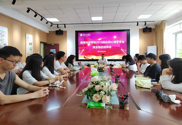 6月7日,学院采取线上和线下相结合的方式,在腾讯会议和逸夫楼A321召开教育科学学院2018级应用心理学专业就业推进会,会议由2018级应用心理学系辅导员鲁蓓蓓主持,院长宋万琚、应用心理学系主任倪磊、2018级应用心理学系全体学生参加会议。