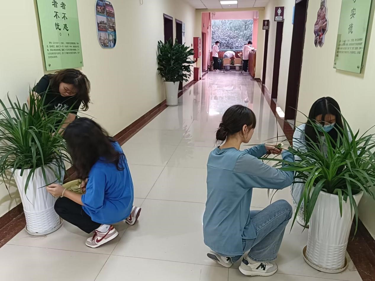为鼓励学生积极践行“绿水青山就是金山银山”的理念,培养学生树立正确劳动观,学院积极开展相关活动并在本学院进行了广泛的活动宣传,动员同学们积极参加绿植维护活动。9月26日团委学生会部分同学在逸夫楼公共区进行了绿植维护。