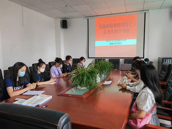 为推进学前教育专业实习工作顺利开展,8月23日上午,教育科学学院学前教育系实习点负责人、实习指导教师刘晓红博士带领学前教育专业2019级1班和2班8名实习生来到乌当区振新幼儿园,与幼儿园实习负责人徐春艳主任对接实习生来园实习相关工作,并对本年度幼儿园实习指导教师进行专题培训。