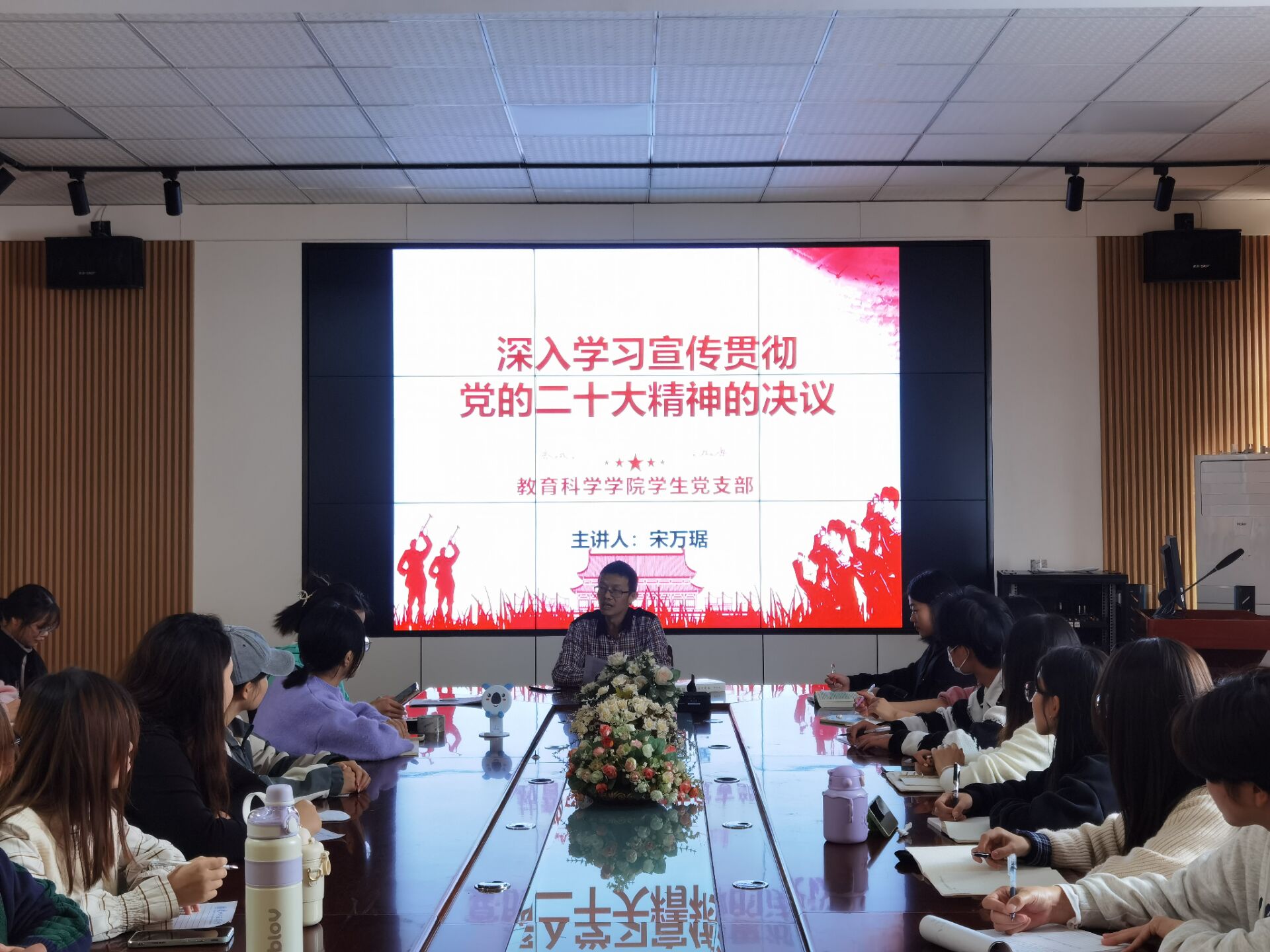 为深入学习宣传贯彻党的二十大精神,1111中午教育科学学院院长宋万琚在学院会议室为学生党支部开展学习贯彻党的二十大精神专题学习二