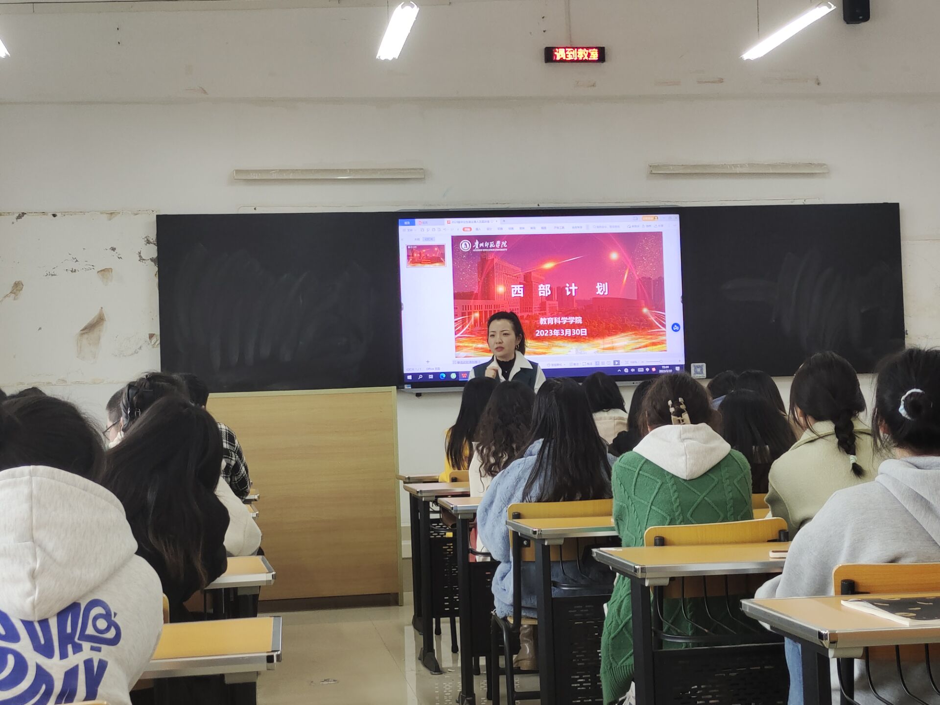 张源对西部计划进行讲解,重点对西部计划的政策、报名流程、时间节点进行宣讲解读,从爱国精神、青年使命担当和人生机遇等方面向同学们介绍了西部计划的意义,以此鼓励同学们投身于西部建设当中,同时提醒同学们在家人的支持下踊跃报名。