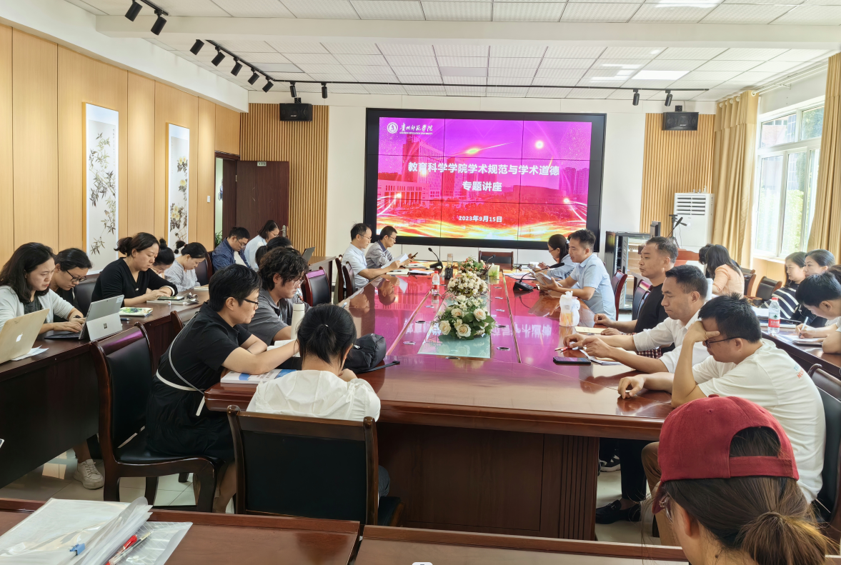 袁川带领大家共同学习了《贵州师范学院学术规范与学术道德学习资料读本》,强调无论是老师还是学生都要坚守学术诚信、遵守学术规范,有效预防学术不端行为。
