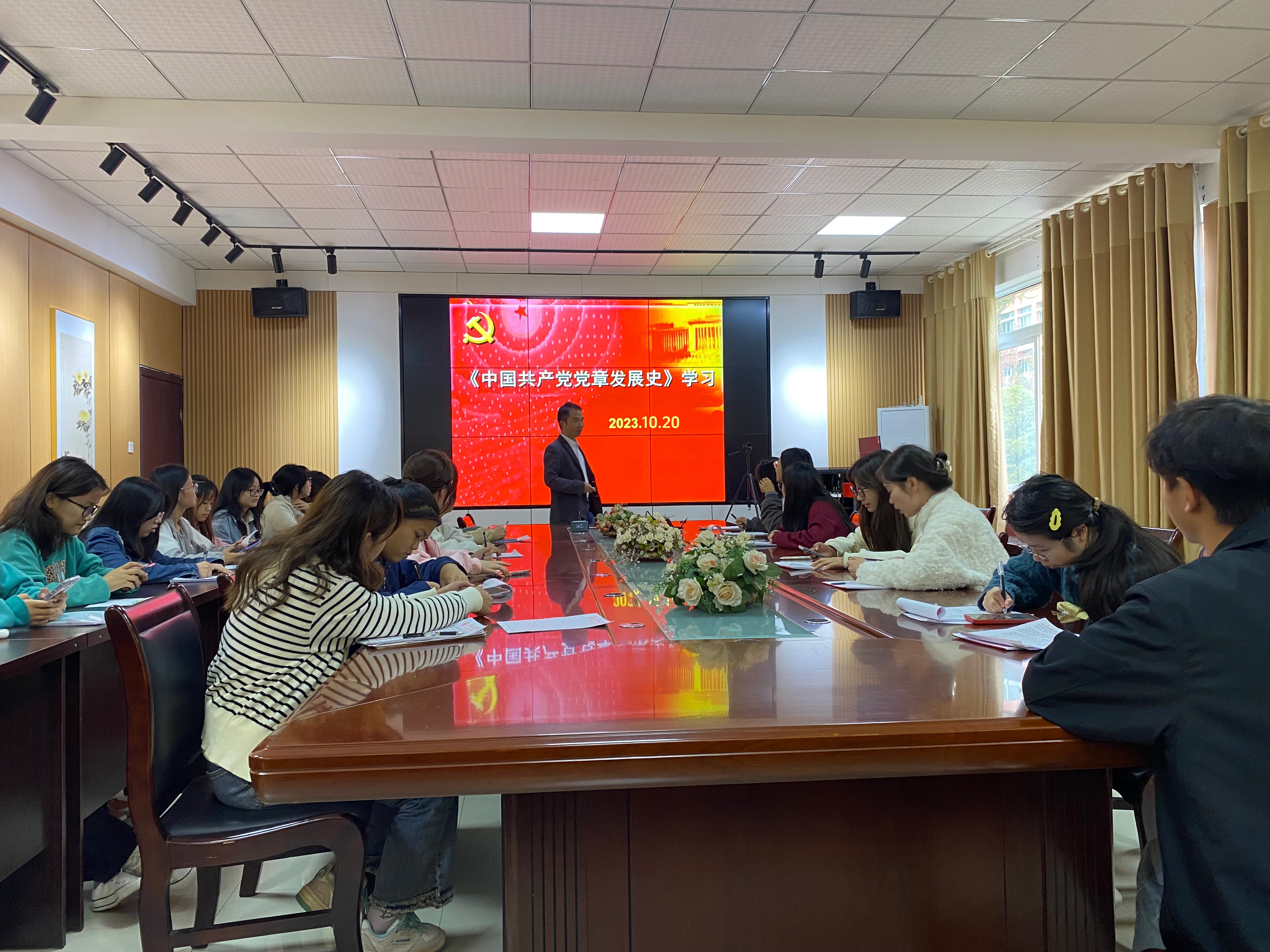 2023年10月20日,教育科学学院在逸夫楼321会议室开展第五十六期入党积极分子培训班第五讲专题党课。本次党课分为两个板块,由教育科学学院副院长袁川和学院学生学生党支部书记张源主讲,全体入党积极分子参加了此次培训。