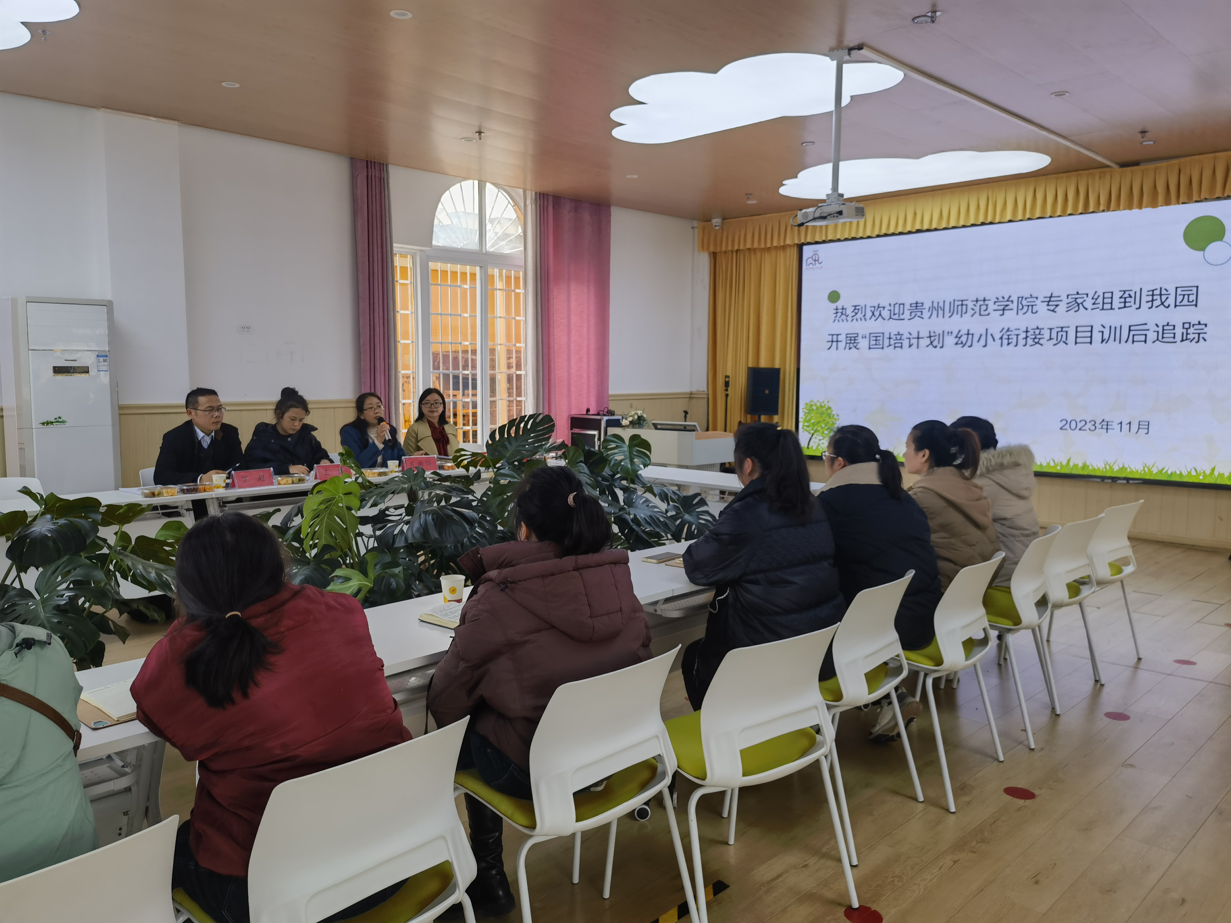 2023年11月13日,教育科学学院书记肖湘平教授、罗超教授、学前教育专业陈泽婧、罗婷、何玉红、王继老师等一行6人赴丹寨县第二实验幼儿园开展“国培计划(2023)”幼小衔接项目训后追踪指导。