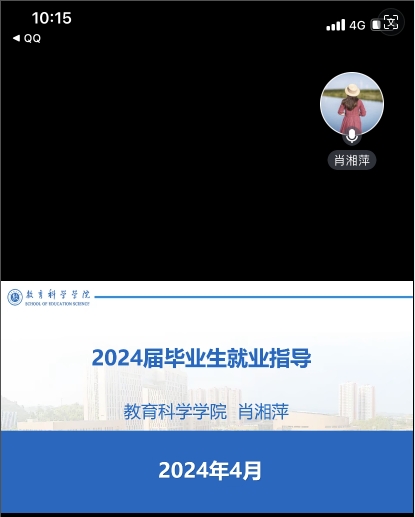 为进一步帮助学生把握就业形势,充分了解毕业生就业相关政策, 4月15日,教育科学学院党委书记肖湘萍在腾讯会议上为学院2020级学前教育、艺术教育、特殊教育三个班学生开展了就业指导宣讲。宣讲会由2020级艺术教育班班长苏慧主持。
