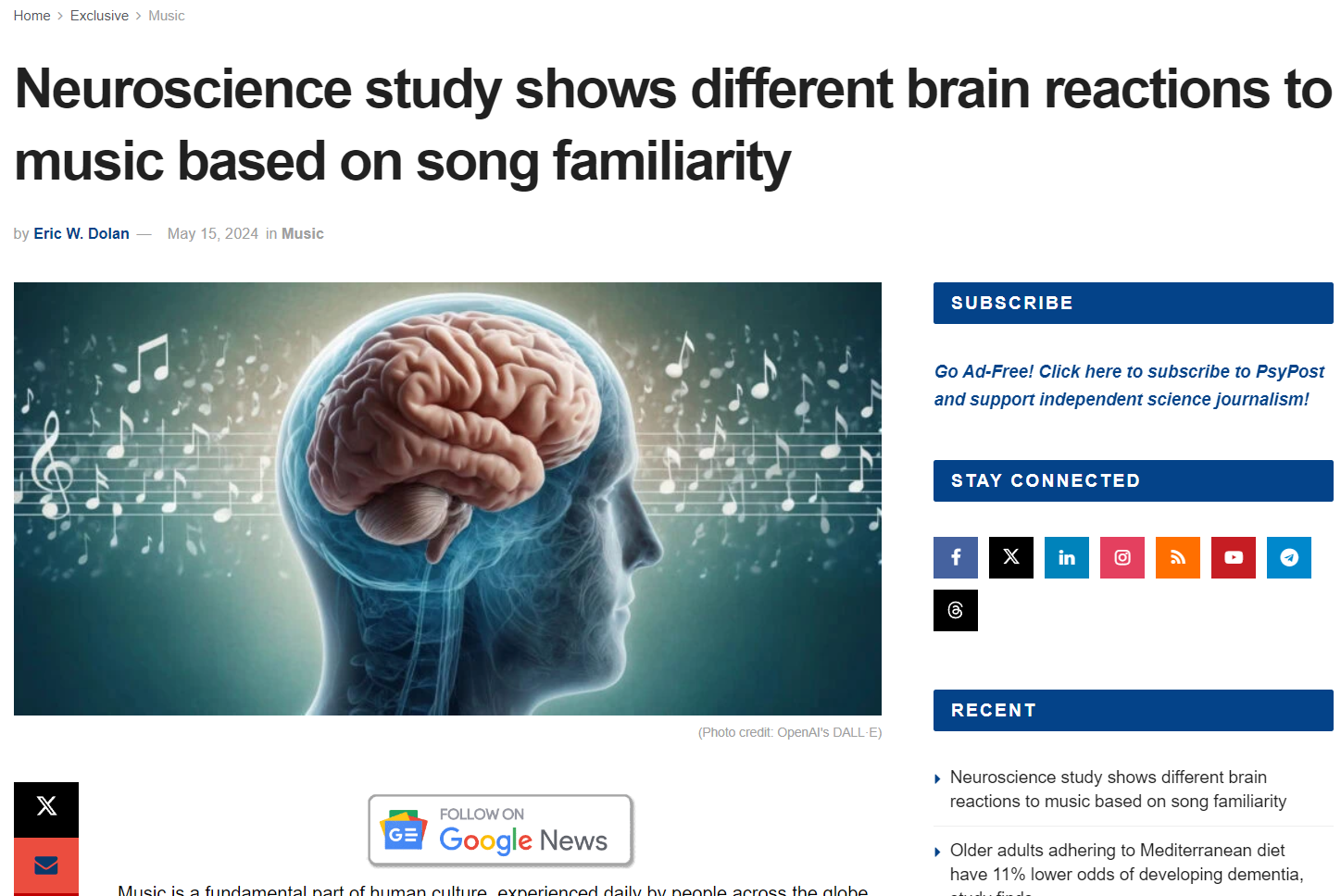 国际知名心理学和神经科学新闻网站PsyPost最近报道了贵州royal皇家88平台教师李强、张源、吴俊华、黄蓉以及西南大学刘光远教授在音乐的神经加工基础方向的一项重要研究。这项研究的论文标题为“Neural correlates of musical familiarity: a functional magnetic resonance study”,已发表在著名神经影像刊物《Cerebral Cortex》杂志上。