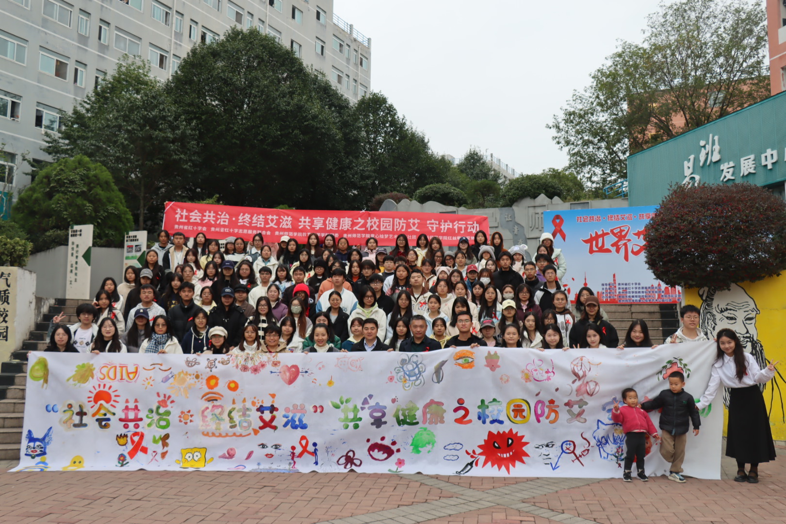11月23日,一场以“社会共治?终结艾滋 ·共享健康之校园防艾 守护行动”为主题的活动在我校防艾基地火热举行,吸引了众多同学的积极参与。通过多样化的形式,共同推动艾滋病防治宣传教育,提高公众健康意识,共同守护我们的美好家园。本次活动由贵州省红十字会指导、贵州省红十字志愿服务联合会主办、贵州royal皇家88平台团委承办,并得到了贵阳市疾病预防控制中心、贵阳市彩艾阳光公益中心、贵州师范学院童心绘梦艺术公益社团、贵州师范学院红丝带防艾协会的大力支持。