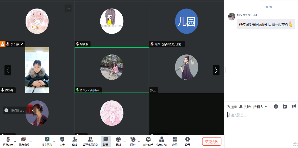 为助力毕业生高质量就业,教育科学学院积极搭建平台,邀请修文县大石乡幼儿园于2025年3月6日为学前教育专业毕业生举办了专场招聘会,此次招聘会通过线上平台进行。教育科学学院党委副书记傅小芳,学院对接招生就业指导处负责老师、21级学前教育专业辅导员张思远参加了此次招聘会。